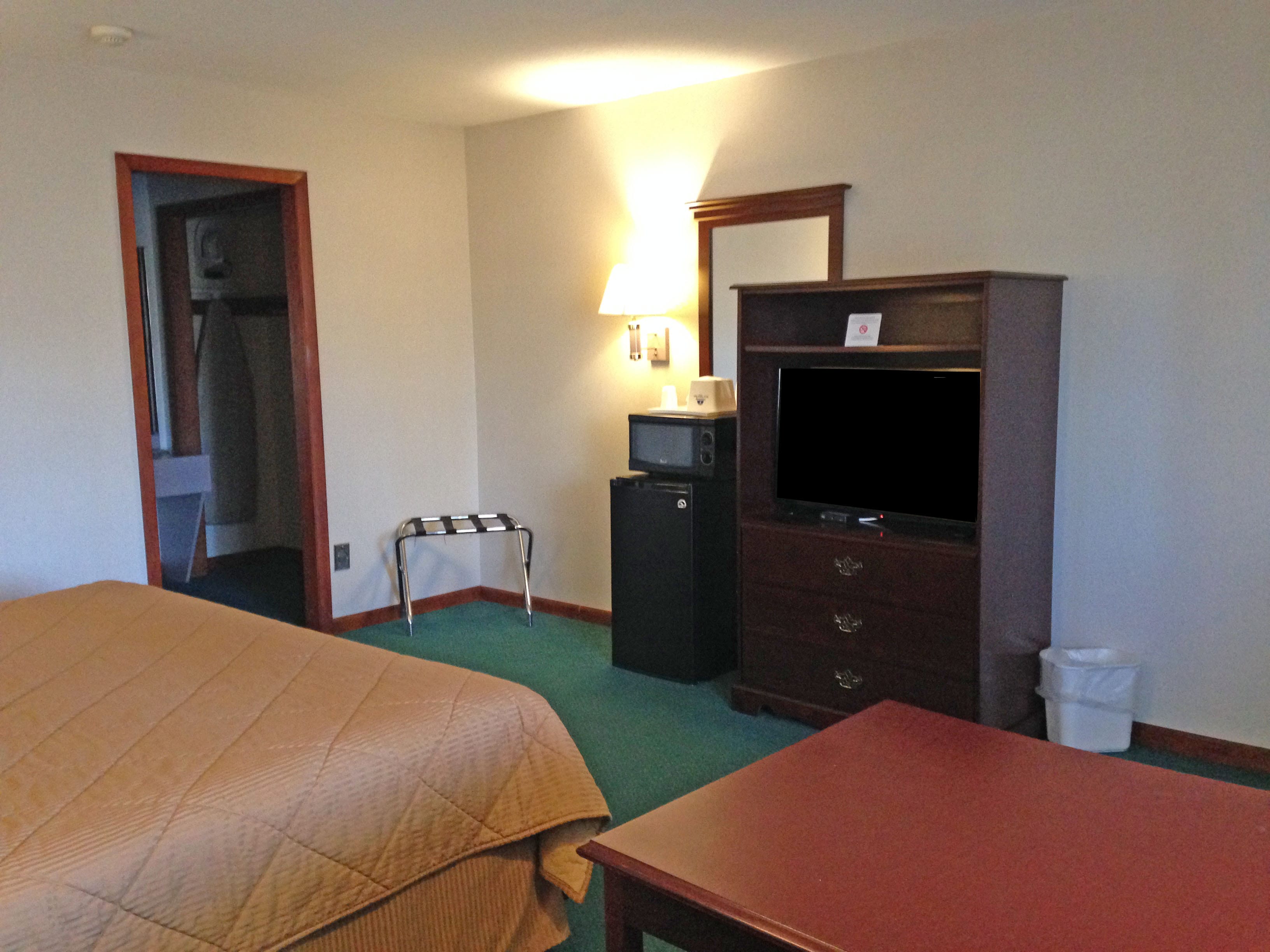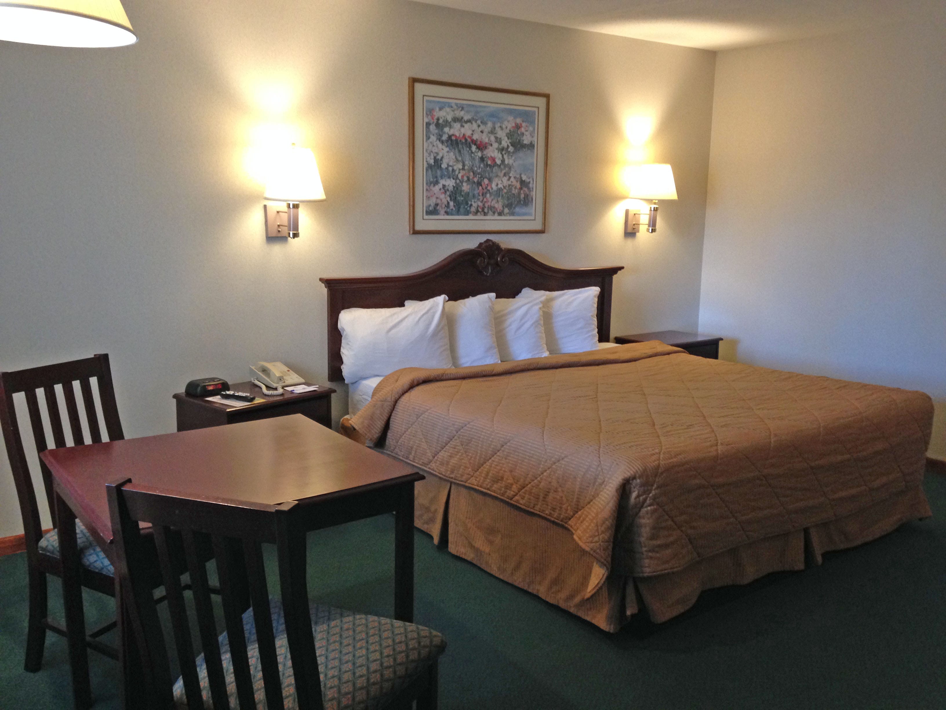 Spacious Guest Room with One Queen Bed. Guest room features include Sitting Area, High Speed Internet Access, Microwave, Refrigerator, Coffee Maker, HBO Channels, Hair Dryer, Iron, Complimentary Local Calls, Voicemail and Writing Desk. Free continental breakfast is included.
